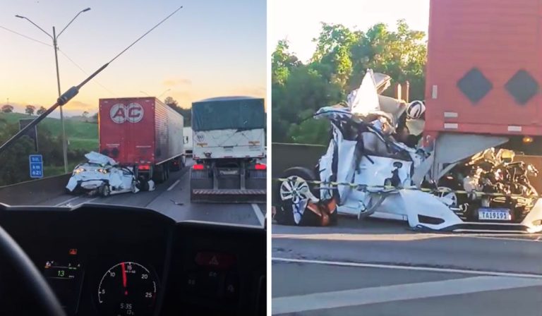 A PRF (Polícia Rodoviária Federal) informou que o acidente aconteceu às 5h45. Os dois caminhões e um veículo Nissan Versa estavam na mesa faixa, no Km 621, quando o primeiro caminhão reduziu a velocidade. Apesar do carro também ter reduzido, o segundo caminhão bateu na traseira dele e o esmagou.